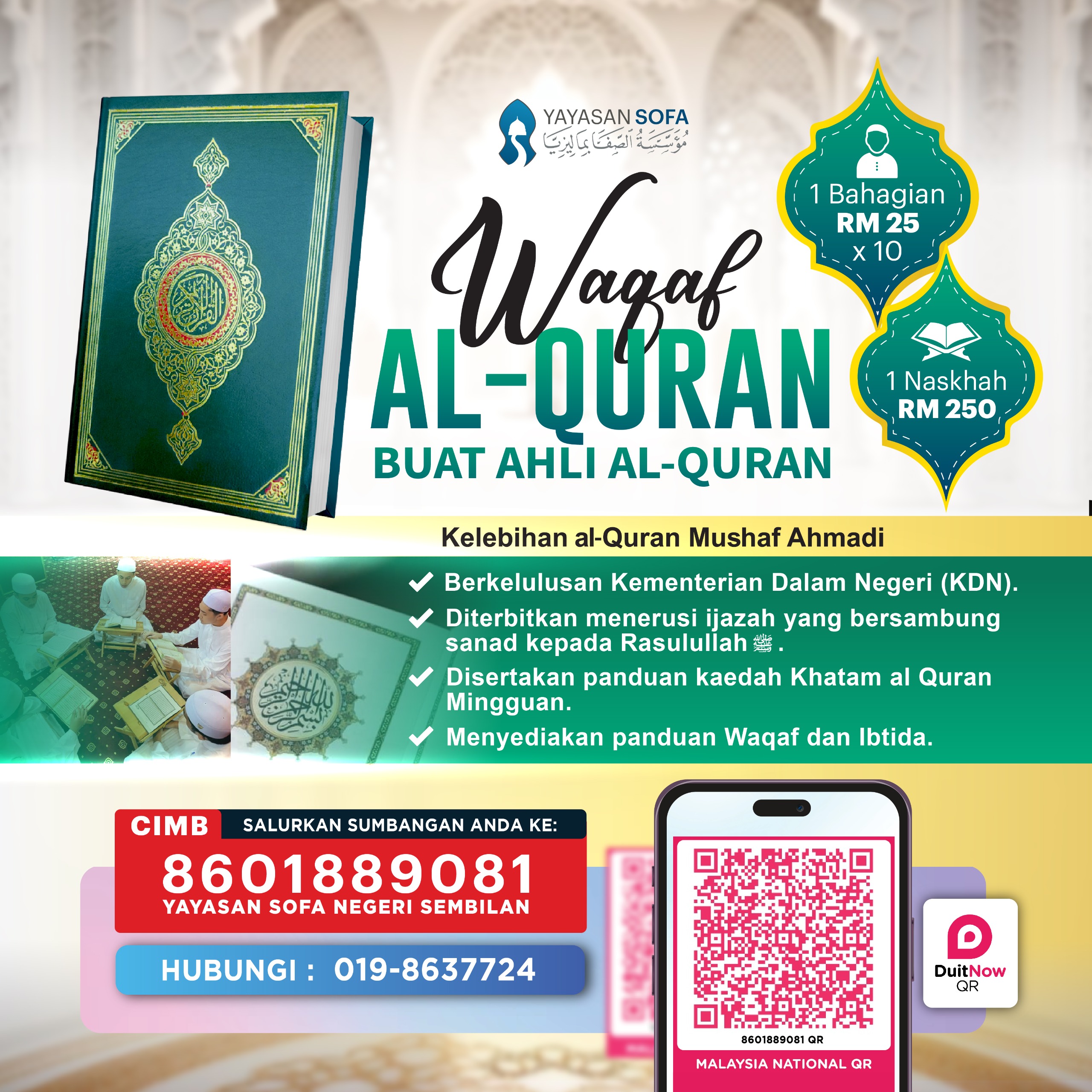 🤲 Ayuh sertai wakaf ini, semoga menjadi saksi cinta kita kepada Al-Quran di sisi Allah kelak.